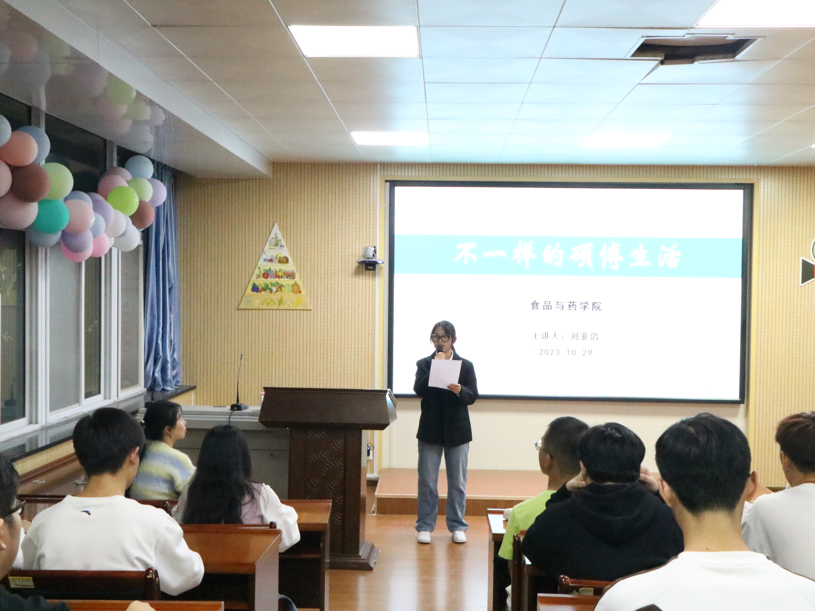 为促进师生交流,激发同学们的求学热情。公司于10月29日晚上19:00在食药楼N204举办第八季第一讲素质拓展论坛——不一样的硕博生活,并成功邀请到刘亚鸽老师担任主讲人,各年级同学积极参与。